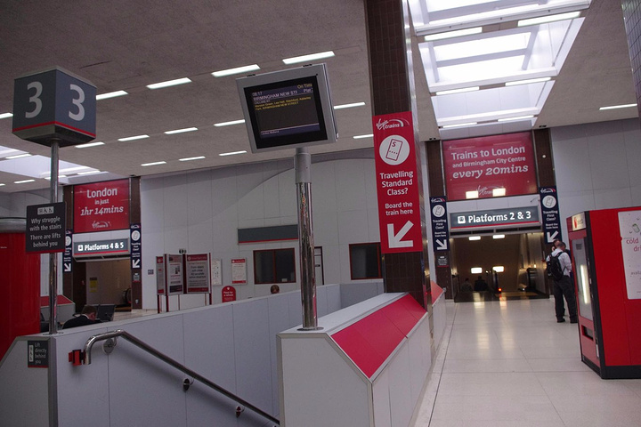 入关虽然被一个local大妞瞎指挥排错了队,还整体还是挺快的,落地不到一个小时连取行李全部搞定。从伯明翰机场出来先做个摆渡车到机场的火车站,然后坐火车去市中心,由于入关取行李时间不确定没有提前买票,到了机场车站直接买,自助售票很方便,选好目的地Birmingham Newstreet Station,当天任一班都是3磅6,插芯片卡直接出票。