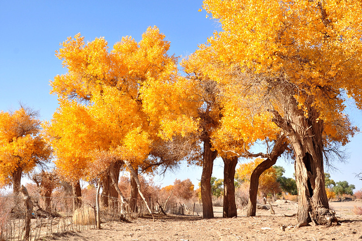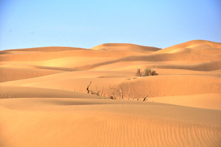 初次了解你的美貌是在去年同学的旅行中,沙漠中那优雅蜿蜒的沙脊线,被风揉皱了显现几何图案的沙纹。一棵棵金黄的胡杨千奇百怪,神态万般,或坚直挺拔、或似苍龙飞腾、令人惊叹与向往。深深触动我的神经,不同以往所见过的景观。于是从网上搜索各种对你的了解,才发现你距离我那么地遥远,3000多公里路几乎穿越大半个中国,但这并不能阻挡我对你的向往。直到今年表姐决定西北之行约我一起前往,按捺不住心中那份躁动,必须行动起来。但被表姐一万三的行程费用吓得不轻,土豪表姐表示鄙视你。看来只能继续当我的穷驴咯!