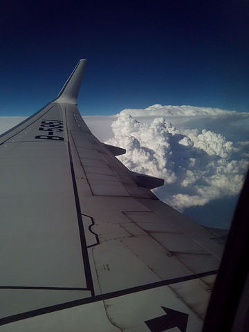 在高空见到了墨兰的天空和棉花糖般的白云,极为好看,似乎预示着本次旅行的顺利。