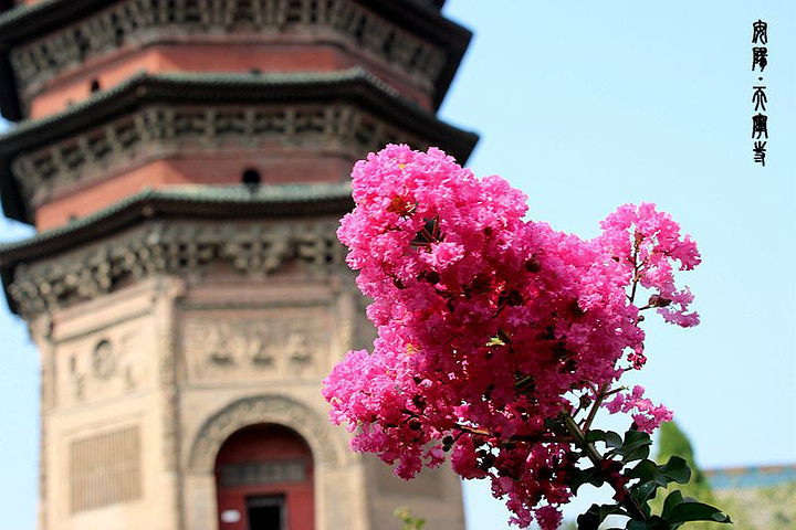 紫薇和古塔相映成画、