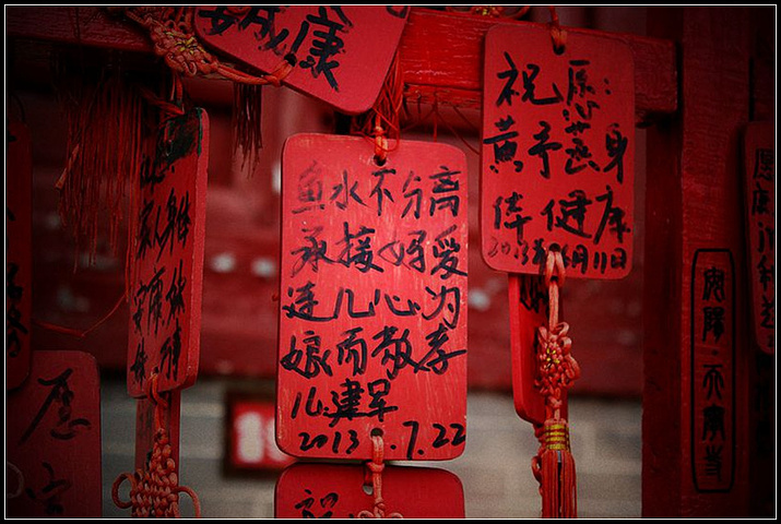 寺里的许愿架上,写满了人们的心声,希望着声声祈祷,佛爷能听到,并化为真实。