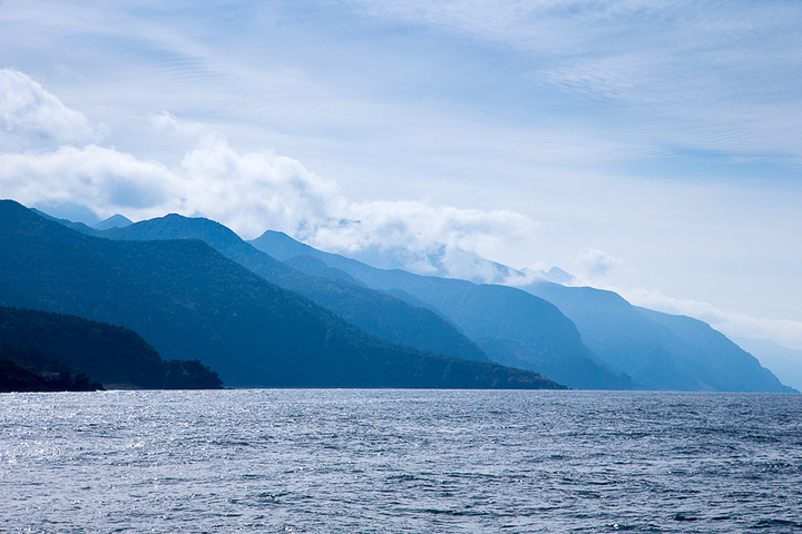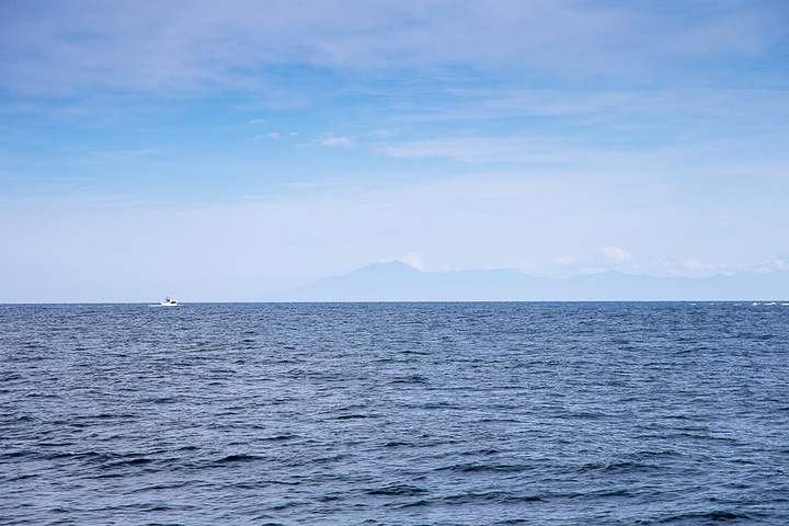 在世界尽头回望知床半岛的海岸线与连山。