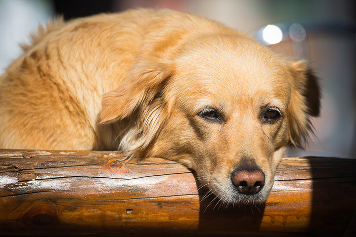 游览船公司养的大金毛狗,非常温顺,但唯独喜欢冲着汽车叫唤,不知道是什么原因。