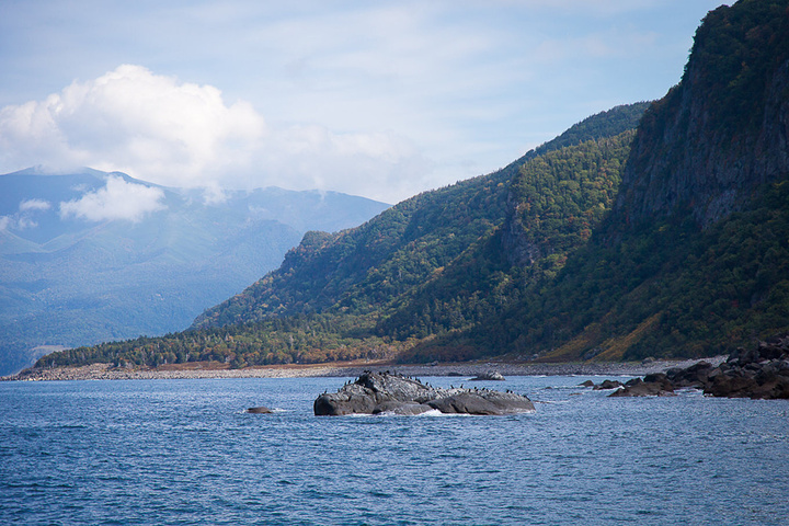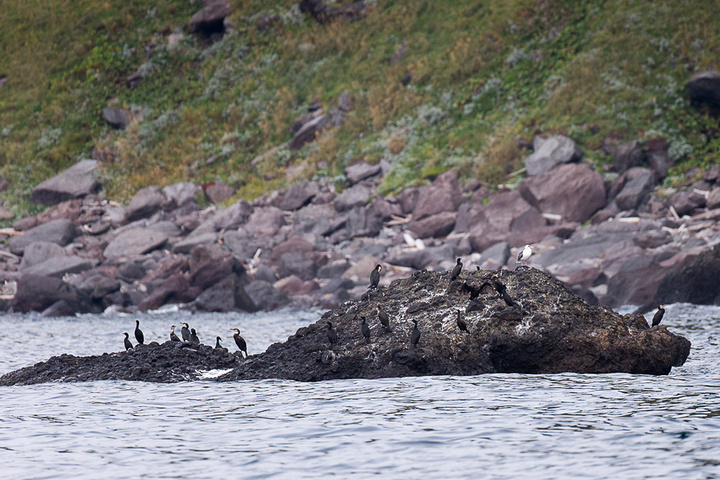 礁石上栖息着很多野生海鸟,知床是海鸟和候鸟的重要栖息地,这也是知床被登录为世界遗产的原因之一。