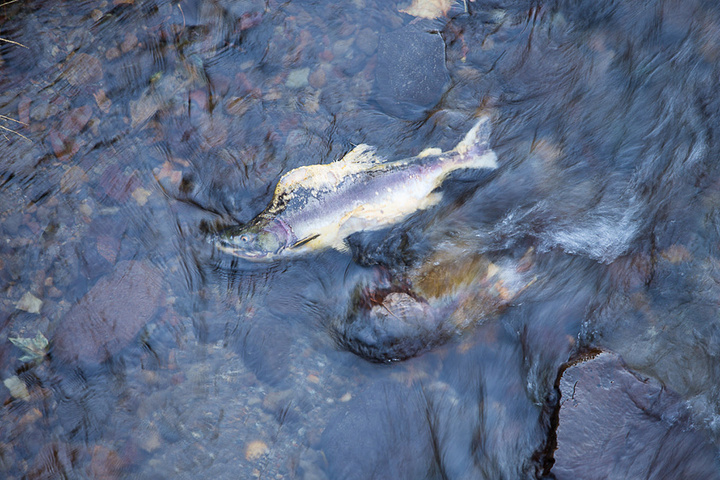 完成了繁殖下一代任务,失去生命的鲑鱼。鲑鱼是一种非常伟大的生灵。