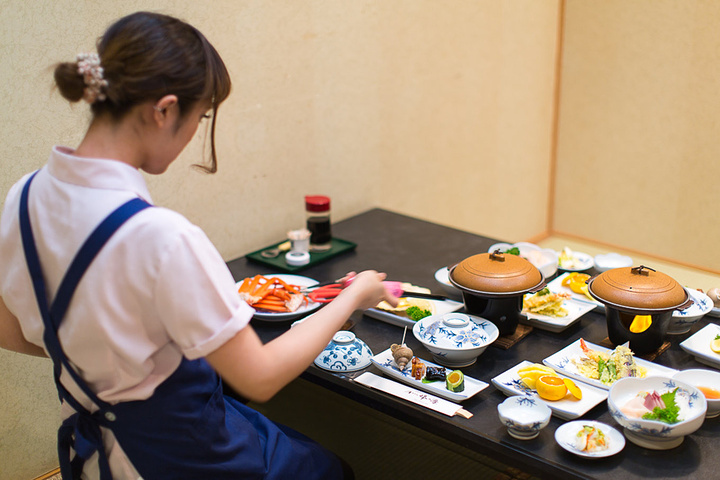 晚餐是包间,拉门贴着我的名字,是用预约酒店时留下的英文名。