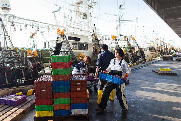 男人出去打鱼,女人则在渔港卸鱿鱼,最忙的时候,从事其它行业的人也会来帮忙,帮着开叉车,装卸鱿鱼之类。