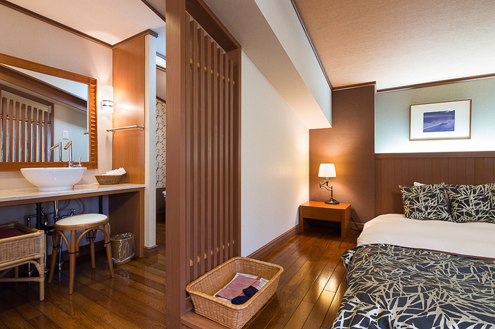 酒店带有欧洲山小屋的风格,碎石砌成的山墙和壁炉,配上木制地板和桌椅,想象一下冬天落地窗外一片白雪,坐在这里烤着火,壁炉旁边看书的感觉。鹿谷基本不接待团体,只有散客。冬天来旭岳滑雪的很多都住在鹿谷。推荐冬天来旭岳时可以到这里体验,风格与大雪山的感觉非常搭。