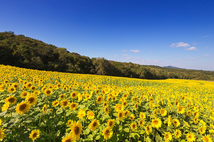 我们在千岁观光联盟的指引下找到了这片向日葵田,真的是大出我们所料,也许因为机场和购物中心的关系,千岁别的魅力都被掩盖了,以往都是北龙或名寄的向日葵知名,而且通常8月末花期就过了,10月的这个时候北海道依然能看到大片的向日葵,就在千岁,我们经常错过的千岁,这回是来值了。千岁的向日葵不是用来结葵花子的,而是一种花期较晚的品种,用来给土地催肥用的。花开完直接就烂在地里,冬天过后,土地就变得更肥沃了。