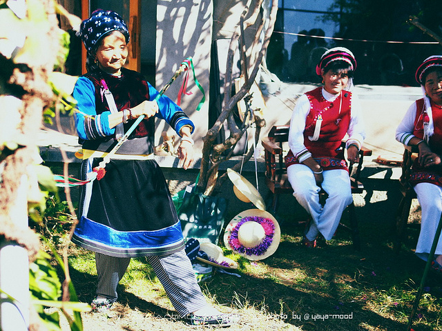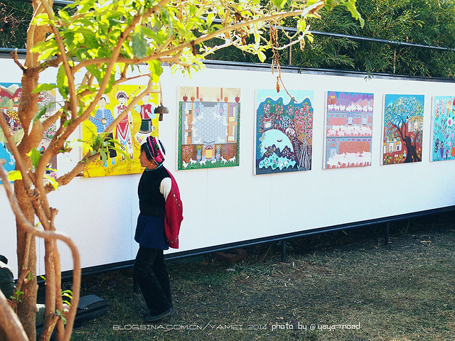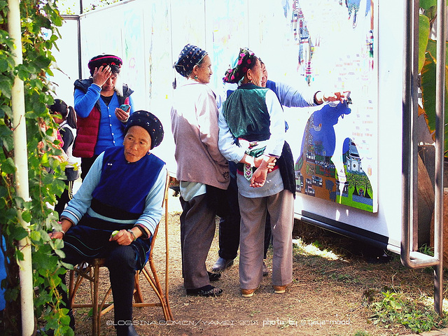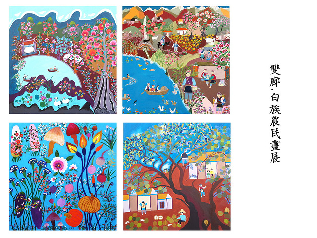 如果我不说,让你来猜,你能猜出下面这些色彩斑斓的绘画作品全是由七八十岁的老奶奶们所完成的吗?这次有幸在回家前赶上双廊每年春节举办的白族农民画展,见到了传说中的沈见华老师。老师是最早一批来双廊定居的艺术家之一,上海人,在双廊指导当地的老阿妈用自己的视角画反应当地生活的农民画,在很多地方做过专场的展示。而这个农民画展,一年一次一般是春节举办,沈老师和我想像中严肃的形像不太一样,挺潮也亲切,不过我还是不太敢和老师说太多话,只有默默拍照
