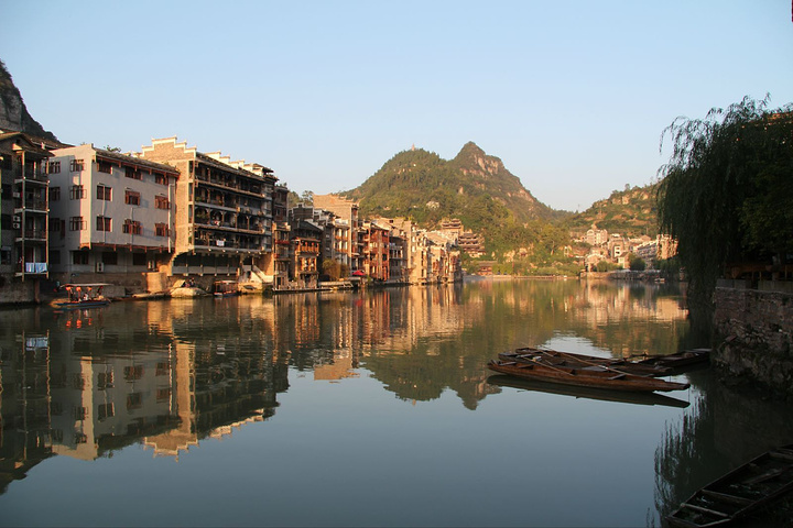 宁静的小镇,氵舞阳河流向远方深山,不知道为什么我在这会想起“轻舟已过万重山”,看来到了美的地方,作诗就是有感而发的事啊
