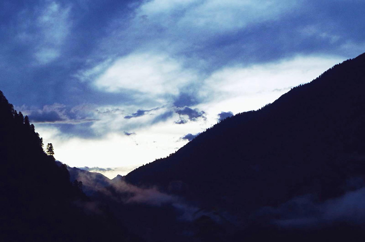 通往易贡的道路崎岖不平,右侧紧贴着一条湍急的易贡藏布(藏布是藏语中江的意思)夜色已深,我们只能抹黑前行,仅仅40公里我们愣是挪了两个小时才走完。后来我们原路返回时,看到那天走过的夜路,不仅没有任何防护,而且是狭窄的羊肠小道,路上还有前一天塌方飞落的巨石,不禁心里暗暗后怕。
