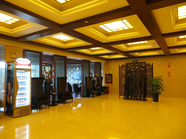 乘着电梯来到三楼,哇和境酒楼的装修真的是高大上,这么好的装修菜品味道能否和这种装修相媲美呢,由于还要赶路所以午餐的小酒就免了来扎现榨玉米汁尝尝吧,在其它地方吃饭服务人员只负责把菜上齐后就不见踪影了,但是在和境这里却大不相同从你进入酒楼的一刻起就有专职服务人员随从直到你用餐完毕,在用餐期间不间断的对用餐人员进行服务工作,像这么高大上的地方收费如何呢,付账的时候收银员告诉我们用餐费用为180元,哇噻真的是物超所值啊!