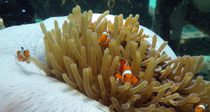 小丑鱼是潜水摄影的入门必选,颜色鲜艳,又基本待在巢里不走远,背景又是晶莹剔透的海葵,十分容易拍。