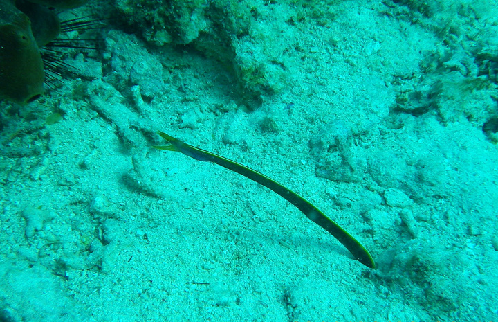 这张换了阿猪亲自操刀,效果立马大打折扣,荧光蓝的ribbon eel在海底看着可漂亮了,她拍的就这么黯淡无光啊。。