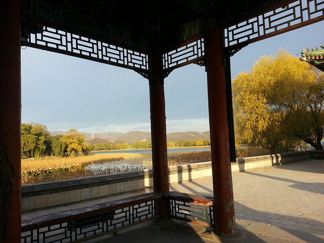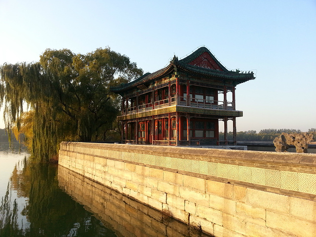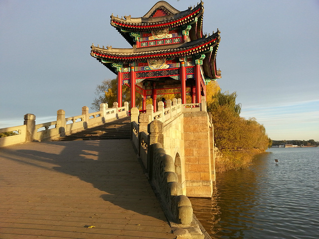 站在此桥向东可观南湖岛,向西可远眺畅观堂,向北远望佛香阁。
