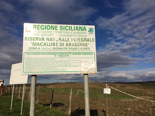 本来计划从陶尔米纳开往阿格里真托时顺路去,结果大雨滂沱未能成行。第二天,我们想去碰碰运气,再次绕道前去,还是缘分未到。本地人看到我们开往这里,特意驱车追上来告知因为九月两个当地小朋友被泥浆淹死的事故,这片自然保护区暂时关闭了。