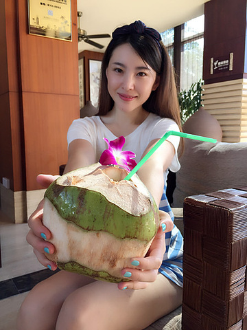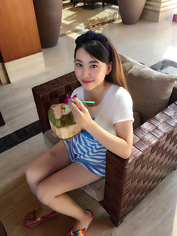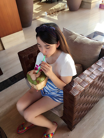 吃完饭在大堂里坐坐,来个椰子喝喝,儿子这次来三亚也喝了不少椰汁,当水了。