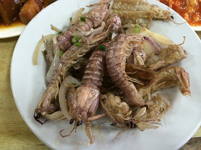 椒盐虾蛄,据说南方人很喜欢吃,我吃着感觉怪怪的,看起来像蜈蚣。。