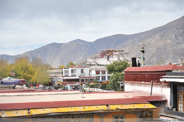 转天下午三点多到了拉萨,我们出了戒备森严不让停留的火车站,打上在警察眼皮底下漫天要价的出租车直奔酒店。酒店在大昭寺南侧附近,安顿之后去八廓街转了转,然后觅食。小武因为反应比较大,没吃饭就回酒店了,我们找了家川菜馆吃完又给小武打包饭菜,今天就早点休息,调整适应为主。晚上收到王老师的信息,她12、13年连着两年都来西藏做针对唐卡行业的调研,对这里很有感情,她担心我们有高反会不适应,让好好睡觉,实在不行就吃点药。我和小武约好明天去布达拉宫或大昭寺,时间待定,先睡到自然醒再说。第二天接近中午才爬起来,去布达拉宫,结果还要提前一天预约门票,我们之前听到的淡季不用预约的消息是不准确的。