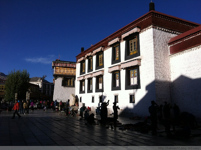 因为计划明天去日喀则,就没约门票,无奈之下先奔大昭寺了,期间让王老师帮忙联系附近开工作室的唐卡画师,准备大昭寺之后就去拜访他。与上次相比,这季节的大昭人少了许多,一个多小时就出来了,人困马乏的,夫人张罗着喝西藏甜茶,我之前竟然不知道有甜茶这东西。路上背着相机,因为太沉,没象上回一样走哪儿拍哪儿。好了,啰嗦这么多,接下来就用几个图片带你故地重游。