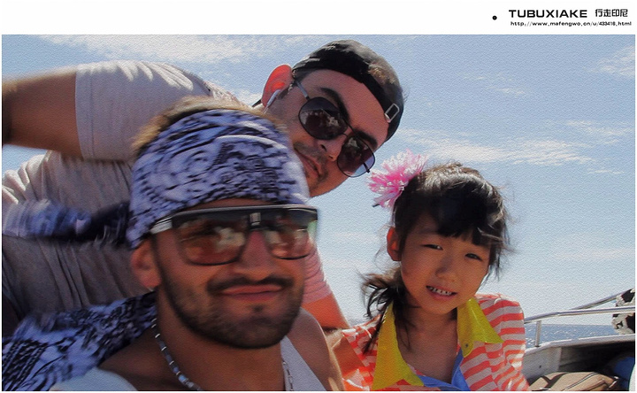 沿着船屁股的狭小边上的梯子,事先和小一禾解说怎么上,一定要小心,因为船在不停晃动和上下跳跃,手要抓紧,边上掉下去可是世界上最深的大海,远处还可以望见巴厘岛的阿贡火山屹立在云中。