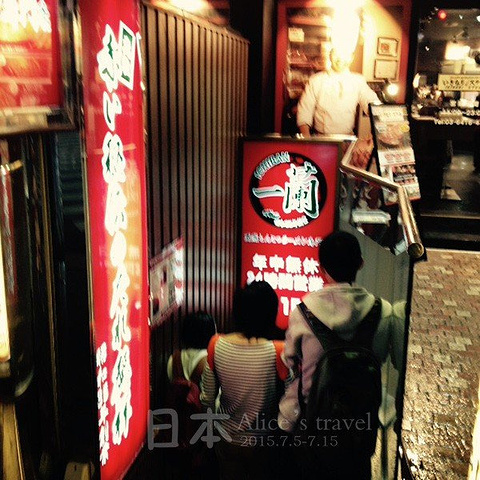 一兰拉面是在地下室,队伍已经排到地面上了,这张糊掉的照片更加能体现出拍摄者那一刻躁动的心