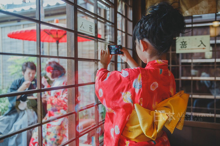 穿着浴衣坐在这里整个氛围太有腔调了。。。只是,小盆友,你的左脚怎么出来啦