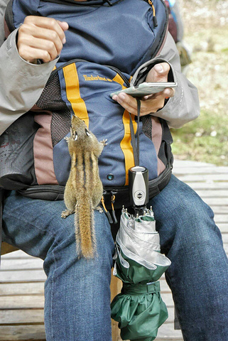 休息的时候来了一堆松鼠,轻车熟路地向人们讨食。