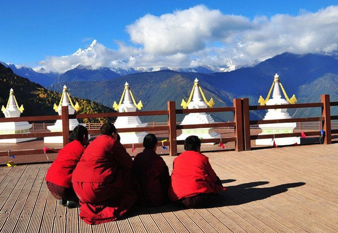 在飞来寺观景台经常在僧侣在神山前诵经祈祷,梅里雪山已经成为他们精神世界的重要支柱。