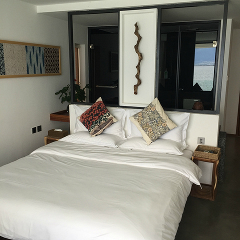 荷月在兰秋下面,最大的卖点的就是天幕星空,而我最喜欢的则是对着海,看着午后阳光透过窗口洒进房里。
