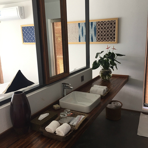 时雨是一间双人房,我更喜欢叫做“闺蜜房”,比兰秋、荷月都大,虽然海景相对少一点,但两个人之间的私密性会比较好。而窗户的设计,我感觉是用了苏州“窗画”理念,以窗外对景色为画,窗为框。