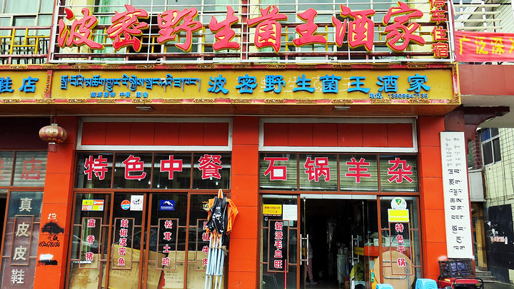 来到波密一定要来这家波密野生菌王酒家,一定要吃他家的石锅野生菌炖柴鸡煲,菌类有7、8种,超级鲜甜,鸡肉更不用说,鲜嫩,我能说它有鸡味么-.-#,鸡骨是黄色的,在广州根本吃不到这种鸡。