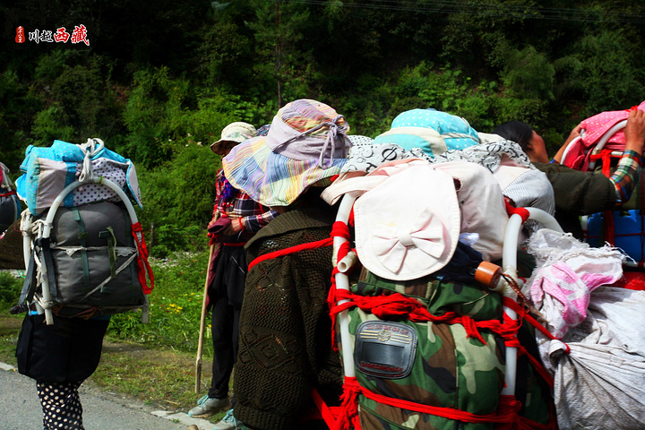 遇见一群要下山的妇女,背着那么多行李包袱不像是转山的,但是这个季节也不是采冬虫夏草的季节,不知道她们是干嘛的。