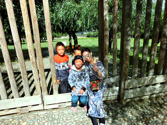 桑树王应该是藏民自家或者村子所有,只在一个小村子里,门口有一大堆小孩超级有礼貌的和我们问好,于是我们分给他们每人一块巧克力,他们都非常高兴的表示感谢。