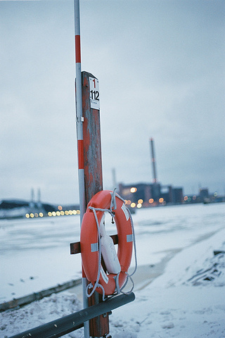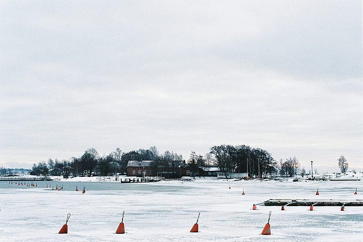 整片天地就像是同出本源的苍白,临近陆地的海上也结起了一层薄冰,红色的浮标在耐心等待着自由的解冻。