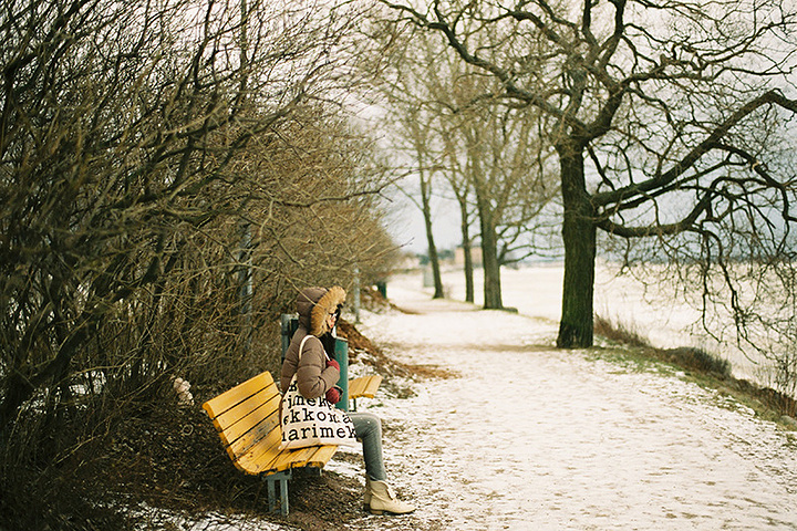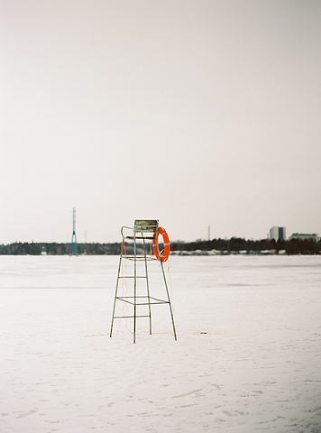 午餐过后,我们又说笑着来到芬兰著名女摄影师拍摄过的Hietaniemi beach,海边的那一把孤立的高椅成为了我们镜头里的焦点。