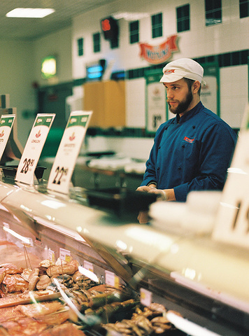 熟食区里的售货员帅哥,眼神有点忧郁啊兄弟。