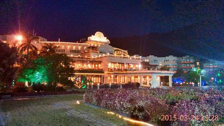 亚龙湾,号称天下第一湾,也是一个来三亚必到的地方,不知道旅行团会不会在此过夜。亚龙湾离三亚市区挺远的,不过有公交到这里。亚龙湾的酒店都很贵,很高档,我选择的仙人掌酒店基本上是这里性价比最高的酒店了,有个很大的游泳池,有私人沙滩,设施齐全,我定的时候一晚上480,奢侈一下。酒店早餐80一位,在饭厅点菜的话大概也是一个人80,有自助餐,178一位,没有点菜划算。不过我们带了锅自己做早饭,你也是醉了吧[em]e104[/em] 全家来这里度假的人很多,像我们3大一小,住一间双床房就可以了,也挺划算的。亚龙湾的海滩有各个酒店的私人沙滩,连成一片,来这里游泳晒太阳的人很多,老外也不少。住亚龙湾的2天我们都泡在酒店里,在泳池边晒太阳,游泳,海边玩玩,晚上在儿童乐园玩玩,时间过的很快的!我之前只在青岛下过海,这次在亚龙湾,由于天气有点凉,浪大,只下去游了一会儿,海水很咸,也不是很清,没有蜈支洲的清澈!我在这里浮潜只模模糊糊看到海底的沙子和一些珊瑚碎片。