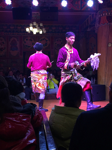 从大风起兮云飞扬的山上下来,有一个小伙伴就感冒了。晚上是热闹非凡的藏族家访。可惜相机没电,只用手机拍了几张。 小火锅和烤肉吃起,精彩的藏族表演看起,还有有意思的主持人和小游戏。藏族老爷爷特别亲戚可爱。宴会结束还有篝火晚会,大家累了一天早早散去啦。