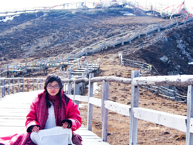 朦朦胧胧的穿衣集合,当大巴开动,远望玉龙雪山的时候困意全无。如果说在云南去哪个景点需要坐很长时间交通的话,你一定不要担心无聊,车像在画中游一般,最美的风景都在路上,即便隔着厚厚的玻璃,随手一拍,依然美得惊艳,恨不得让大巴停下来,一次拍个够。爱拍照的我几乎一刻都没闲着,反正导游说了过了虎跳峡就不让睡觉了,要不很容易出危险的。