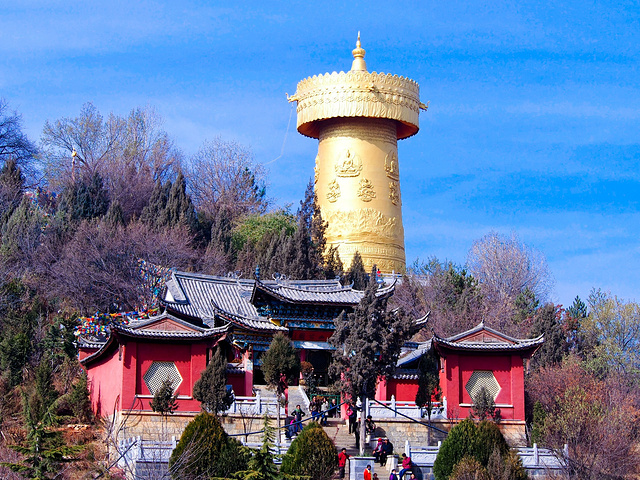 一路兴奋地到了第一站-大佛寺,这个寺庙有着世界上最大的转经筒。远远望去甚是壮观,神圣感油然而生。十多二人齐心协力推动了转经筒,默念着俺嘛呢叭咪吽,为家人祈祷幸福安康。