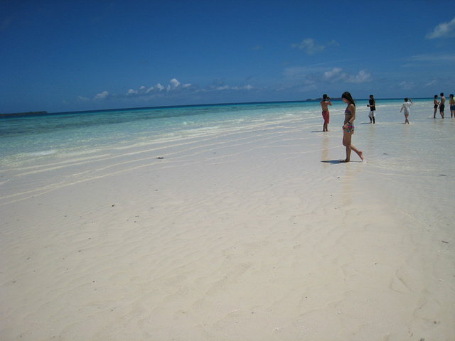 长滩岛退潮时分,海水自然分开,形成一条细而长白色的沙滩,似乎一条天然的分界线。 长滩岛涨潮时分,大部分白色沙滩隐藏起来,剩下长约1KM, 深度到腰的天然游泳池,让您尽情享受。美吧!哈哈~~~~~~天海一色!来自游记七彩帕劳体验高端接待线路攻略,玩转帕劳