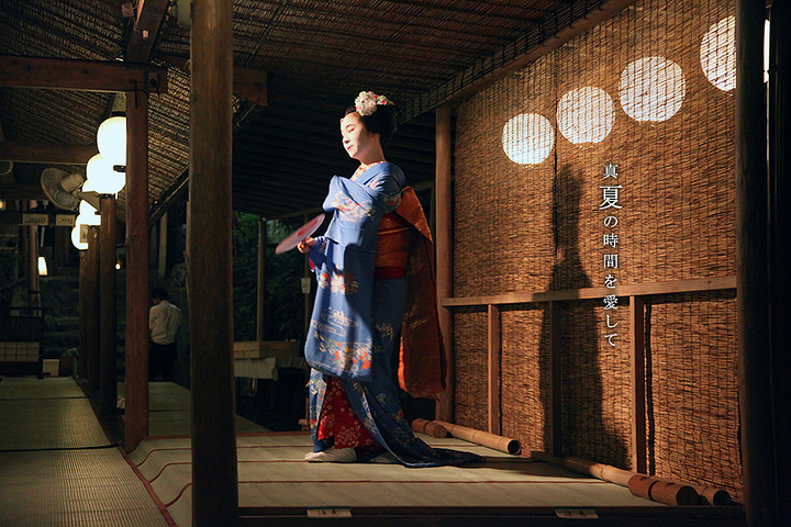 红叶家会在人们吃川床料理的时候安排艺妓前来表演。
