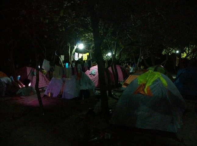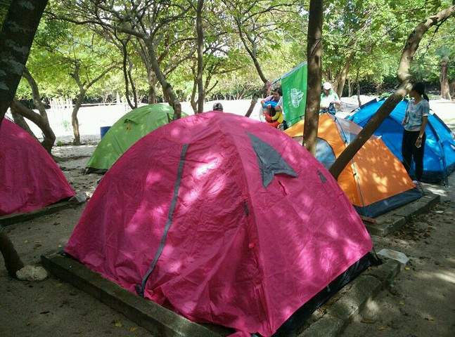 住在海边的帐篷里听着海浪声,本来是一件浪漫的事,可是一群小孩子又喊又叫,一整夜都没睡着啊。