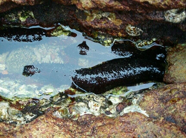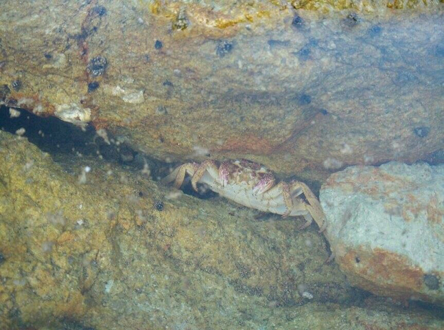 这里有很多螃蟹和海胆,海参,可以捞上来,烤着吃。