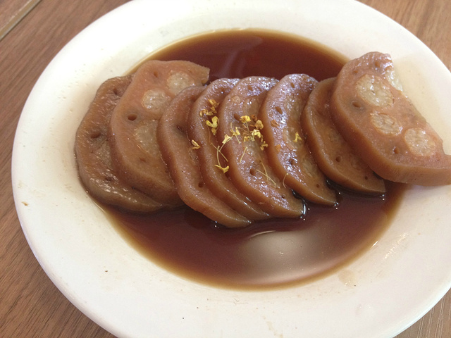 沿着平江路走,找到了一家吃午饭的店铺,叫做品芳茶社,平江路94号(近大儒巷),大众点评上说人均34元,人不少,生意挺好,毕竟已经过了饭点,它们家的桂花糖藕十分好吃,藕孔中填有糯米,带着桂花香气,糖水入味均匀。生煎也很赞。