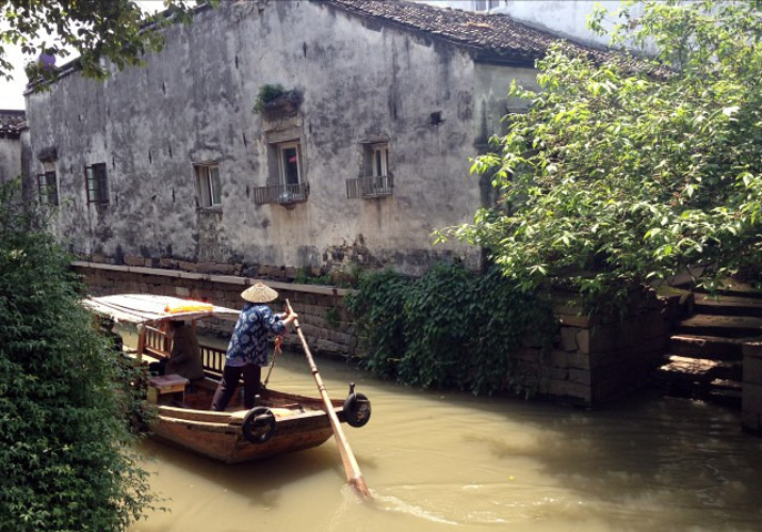 在岸边的低矮护栏上随意坐着,船娘停下来逗弄岸边的孩子,吴语的软糯和此刻的温馨都要把人的心给化了。后来,船娘的蓝布印花衣随着一下一下的桨声,消失在视野之中。