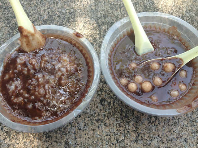 糖粥和赤豆小圆子,是来自平江路两个推着小摊车的女人,小摊只有一桌,已经有客人了,我们只好在旁边的石栏上坐着等。一个女人等着水开,另一个女人坐在旁边抽烟,也不是没有见过抽烟的女人,只是这个人分外好看,倒不是容颜,而是她的姿态与神情,就这么一个小摊,有一个伙伴或者爱人,不仅谋生更是过生活,而好像生活并没有难事。