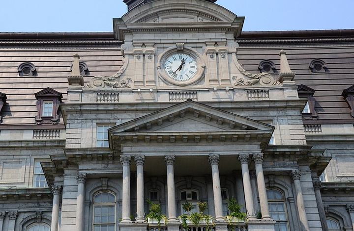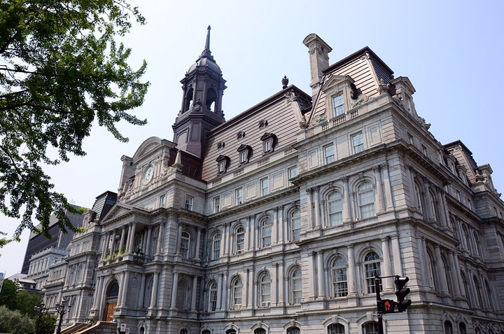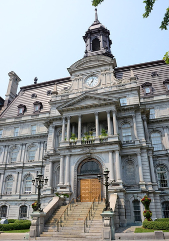 蒙特利尔的市政厅最早建成于1878年,当时建筑的整体上采用了维多利亚时期的流行风格。但是不幸的是这座建筑物在1922年3 月的大火中被毁,只留下了一部分外墙。我们现在看到的市政厅,则是以法国图尔市市政厅为原型重新修建并保存至今的。据介绍市政厅的内部是以大理石装潢的地面和墙壁,金色的大吊灯与纤细的雕刻令其无比富丽堂皇(市政厅可以免费入内参观,但是12日是周日,市政厅不开放)。